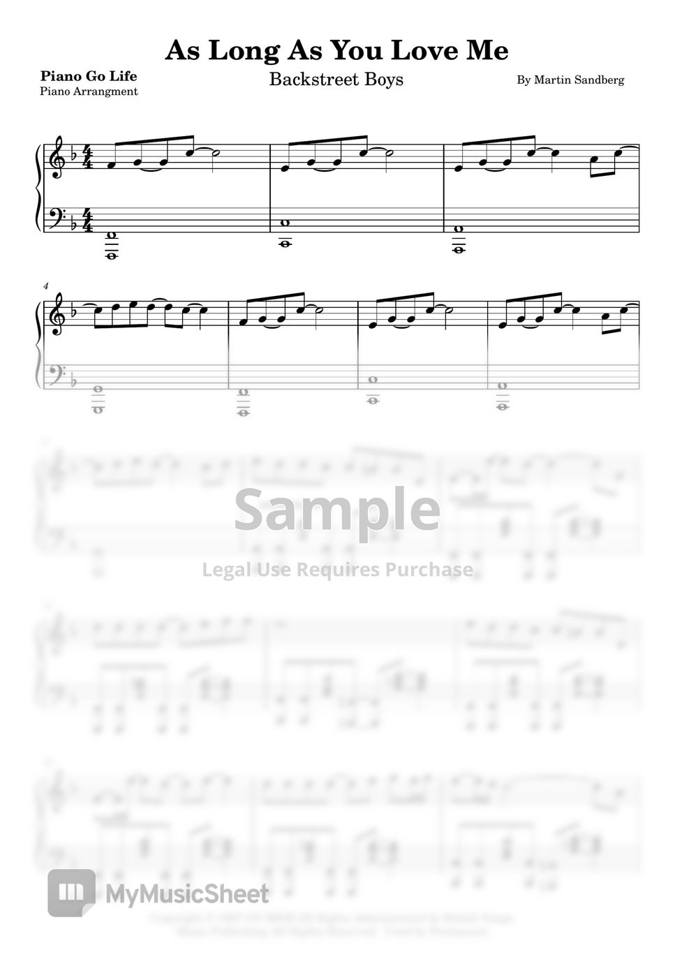 Backstreet Boys As Long As You Love Me Sheets by Piano Go Life